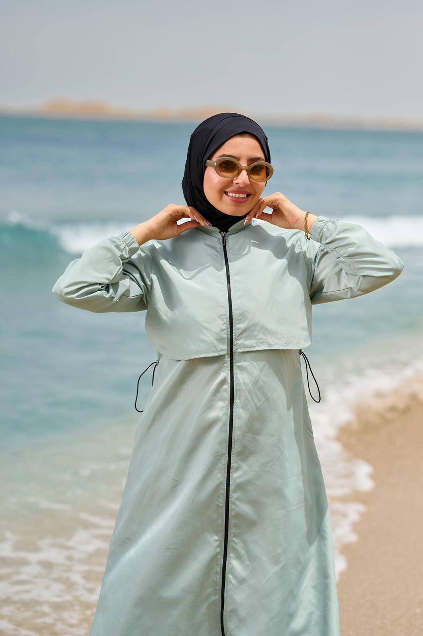 تصميم شبه الدريس مع جزء طاير على الصدر ساتر، يديك حرية وراحة أكتر.