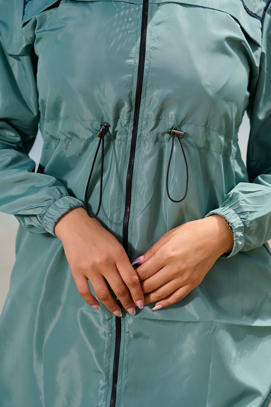 طول المايوه 115 سم، وللموديل المصورة طولها حوالي 170 سم، لكن لو طولك أقل، 125 سم هيكون مناسب جدًا.